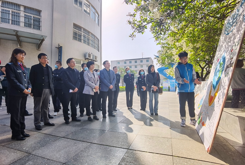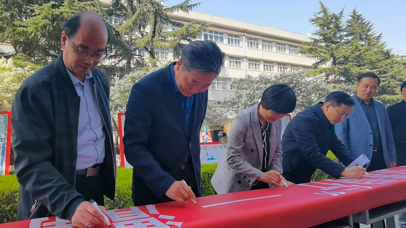 启动仪式开始之前,贺建锋陪同渭南市水务局相关领导及参会人员参观了学校学生精心制作的手抄报展区。参观结束后,贺建锋邀请参加启动仪式的所有嘉宾与在场师生一起在本次活动主题“节水中国,你我同行--渭南在行动”的横幅上依次签名,表达了关心水、爱惜水、保护水的志愿与决心。