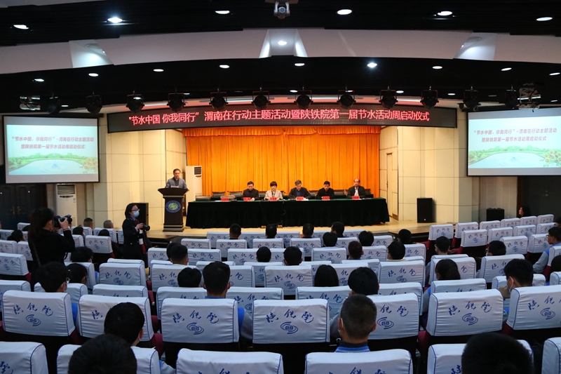 3月22日下午,陕铁院第一届节水活动周启动仪式在临渭校区学术报告厅举行,高新校区诚信厅设立视频直播分会场。学校校长焦胜军、党委副书记郑毅刚、副校长贺建锋,渭南市水务局副局长张敏霄,渭南市节水工作中心主任肖军、副书记靳瑞杰出席启动仪式。学校后勤保障处、党政办、宣传部、工会、学生处、团委、餐饮中心等职能部门领导、教师和学生代表以及相关人员共计五百余人参加了此次启动仪式活动。本次启动仪式由副校长贺建锋主持。