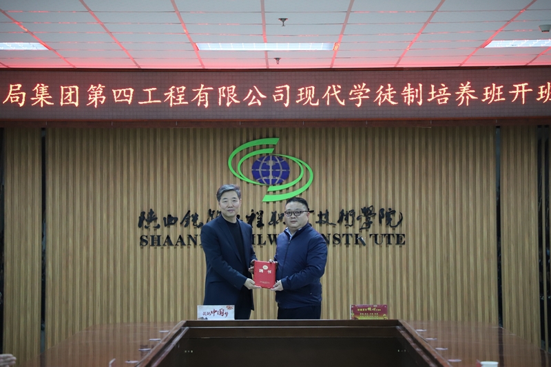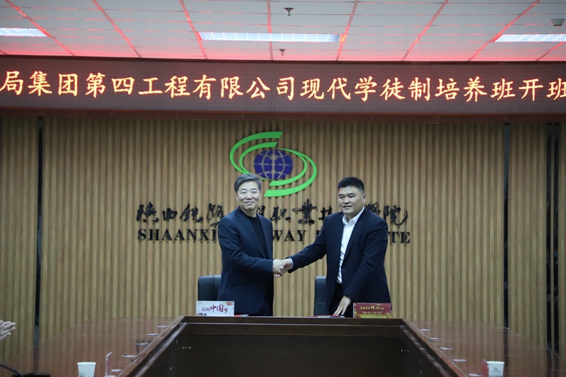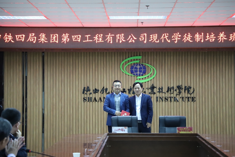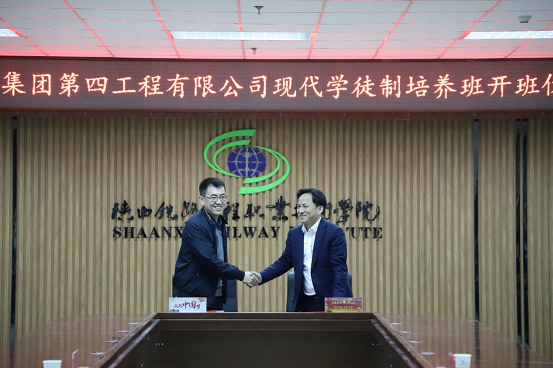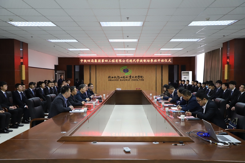3月30日上午,中铁四局集团第四工程有限公司现代学徒制培养班开班仪式在学校高新校区举行。学校校长焦胜军、就业指导中心主任王庆东、中铁四局四公司党委书记彭永、总工程师安刚建及现代学徒培养班的相关老师和67名学徒参会,双方就双高建设、人才培养、学术交流、横向科研、技术服务与成果推广达成战略合作,高铁学院党总支书记李昌锋宣读了开班仪式, 高铁学院院长赵东签订现代学徒制人才培养协议,开班仪式由就业指导中心主任王庆东主持。