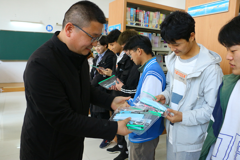 三年磨一剑,今朝试锋芒。为鼓励专升本考生认真复习、积极备考,缓解考前紧张心理,为考生送温暖。4月8日上午,道桥与建筑学院党总支书记刘渭锋、18级毕业班辅导员马娟为考生送去文具套装和防疫物资。
