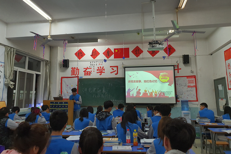 提前准备的同学们紧张而又激动,他们一个个上台演讲那些让人心潮澎湃,感动人心的党史故事。“吃水不忘挖井人,半段皮带,七颗豆子,董存瑞舍身炸碉堡”等等。一段段党史画面生动的浮现在同学们的脑海中,同学们都认真的聆听着,感受着;这些故事,它继承和发扬了老一辈革命家一切从实际出发,面对困难,奋勇直前的红色革命精神,勇于斗争,坚决战胜前进道路上的重重艰难险阻,如教科书般不断教育着下一代,不断激励着年轻一辈继承那种热血,坚毅的红色革命精神。(叶博超)
