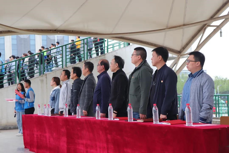 开幕式伴随着五星红旗的冉冉升起,在全体人员齐声合唱的《义勇军进行曲》中拉开了帷幕,随后各参赛队伍与裁判员代表在《国际足联公平竞赛曲》的歌声中有序入场。最后学校党委副书记郑毅刚宣布陕西铁路工程职业技术学院第二十四届“腾飞杯”足球赛正式开幕。