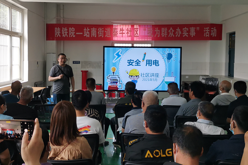 5月13日下午,陕铁院与站南街道秦牛社区携手“我为群众办实事”实践活动在陕铁院启动,副校长蒋平江、铁道动力学院院长姜留涛、党总支书记王宏礼、站南街道办事处副主任石克义、站南街道秦牛社区副书记郭萌萌、社区内各小区50余名负责人共同了参加启动仪式。启动仪式后,学校供电教研室安盼龙博士向社区内各小区负责人进行了安全用电培训。