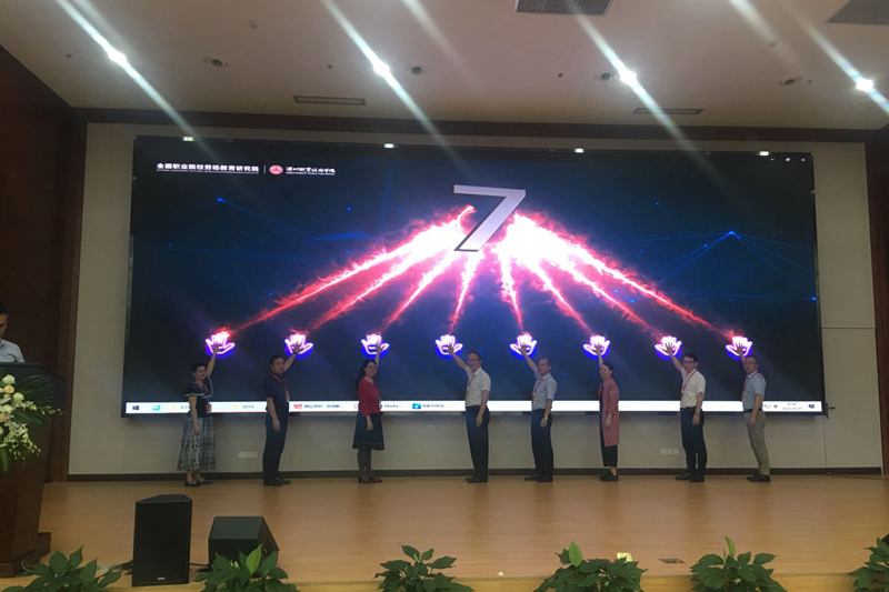 启动仪式上,贺建锋副校长代表学校与深圳职业技术学院、浙江经贸职业技术学院、重庆工业职业技术学院、高等教育出版社、广西师范大学出版社、机械工业出版社等参会单位、院校领导共同点亮电子启动屏,并宣布第一届全国职业院校学生劳动素养风采展示活动正式启动。