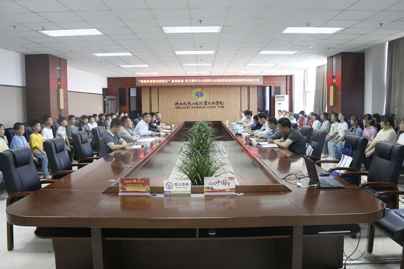 5月18日下午,孝义镇中心小学一行54人师生代表走进学校感受铁路特色校园文化了解高铁科普知识。临渭区教育局副局长李学斌,教育局成教办主任关斌,教育局扶贫办副主任陈琳,孝义镇中心校校长陈冲,学校党委副书记李林军,扶贫办、校团委、高铁工程学院等部门负责人出席活动座谈会。