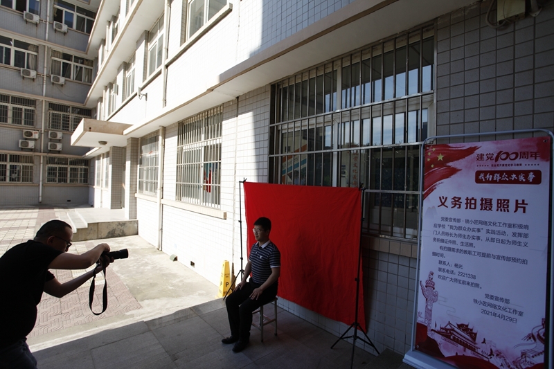为使党史学习教育转化为工作成效,学校在全校范围内开展了“我为群众办实事”实践活动。近日,党委宣传部发挥部门专长,将党史学习教育融入自己的工作中来,为学校师生及教职工家属开展义务拍摄证件照活动。