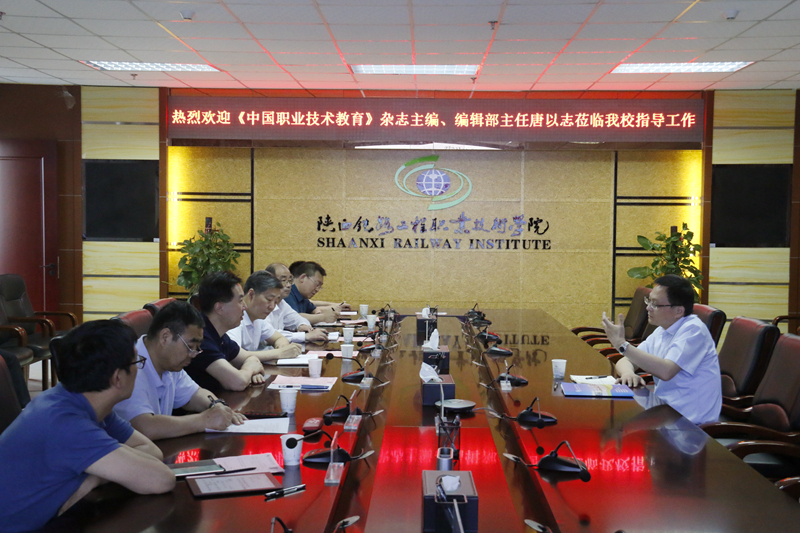 座谈会上,焦胜军介绍了唐以志的学术履历、研究成果,代表学校欢迎唐以志来校指导和交流。随后双方共同观看学校宣传片《铁色长虹》,学校党委书记王津致欢迎词并详细介绍了学校的发展历史,建设成果。最后双方针对当前职教政策、研究热点,发展趋势等进行了充分交流。