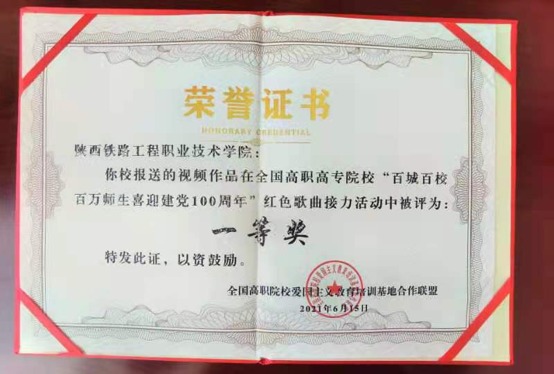 此次“百城百校百万师生喜迎建党100周年”红色歌曲接力活动中,陕铁院团委报送的红歌传唱作品《在灿烂阳光下》经过层层选拔,从全国近百所高职院校中脱颖而出,最终荣获一等奖。