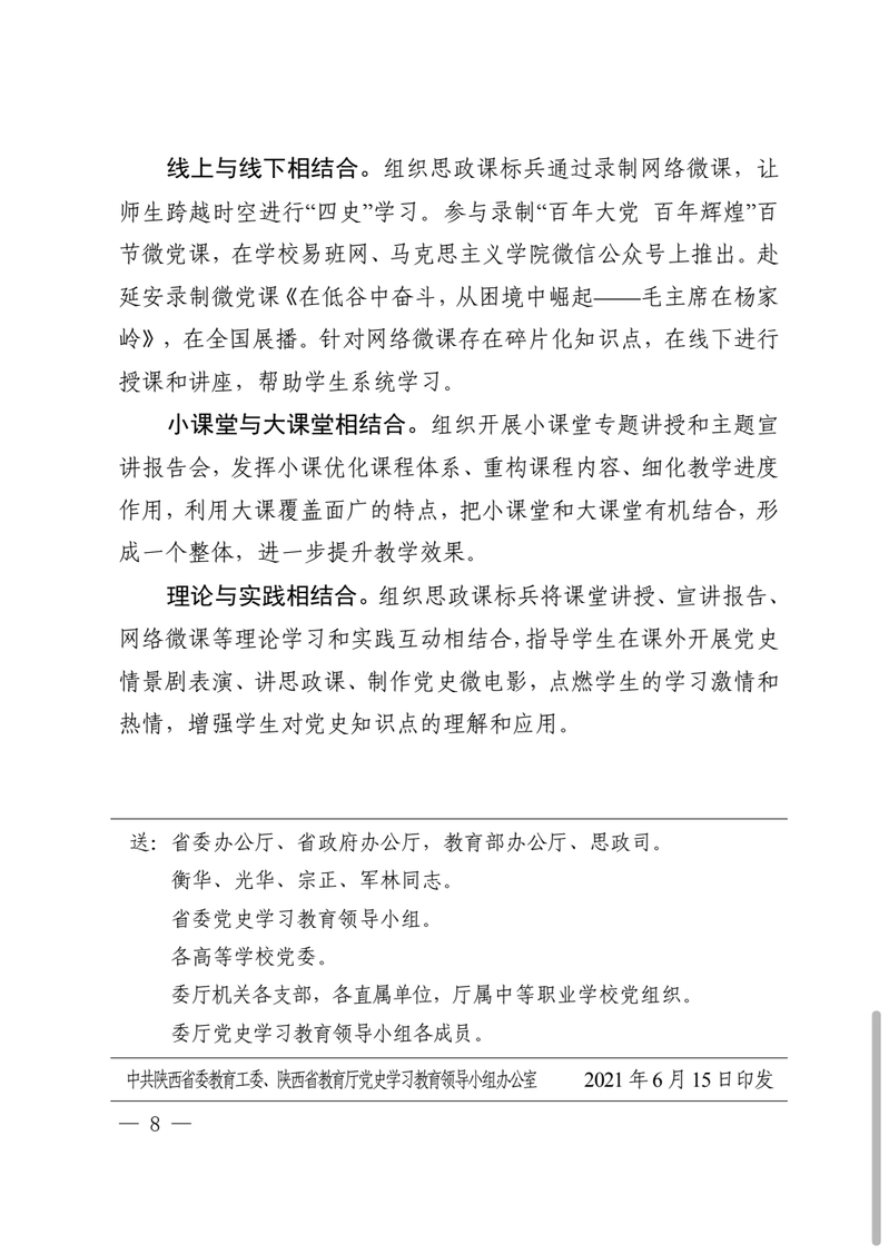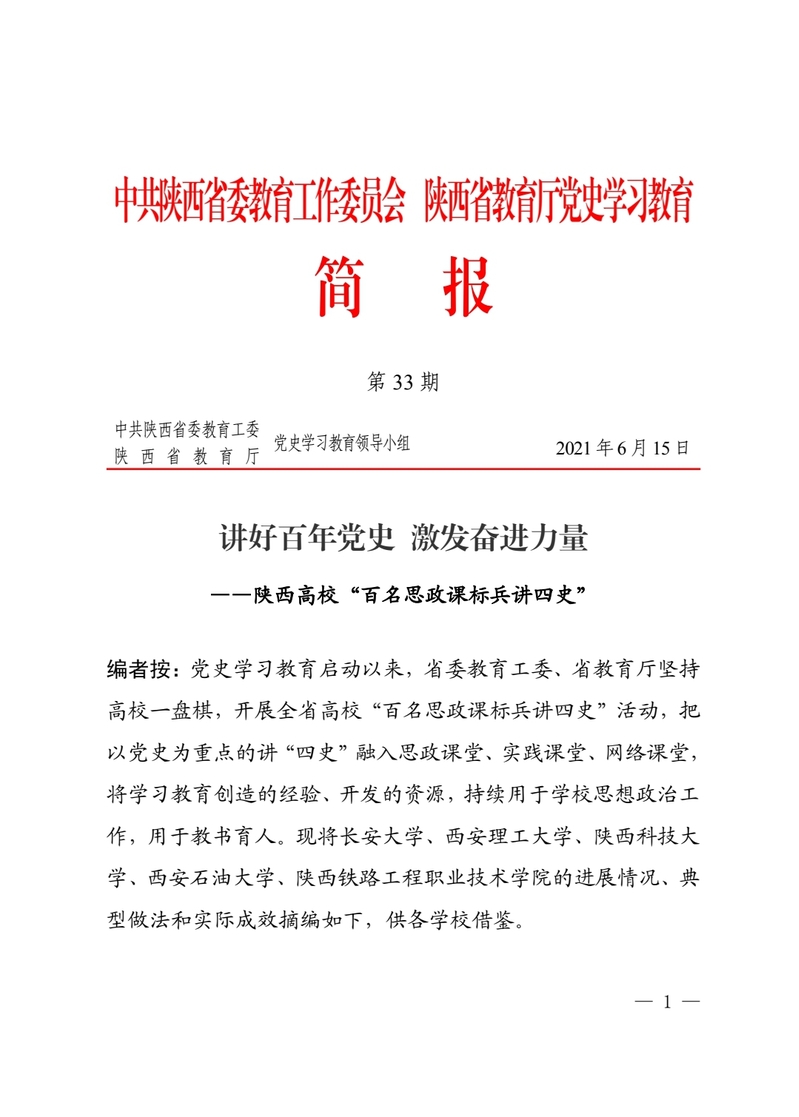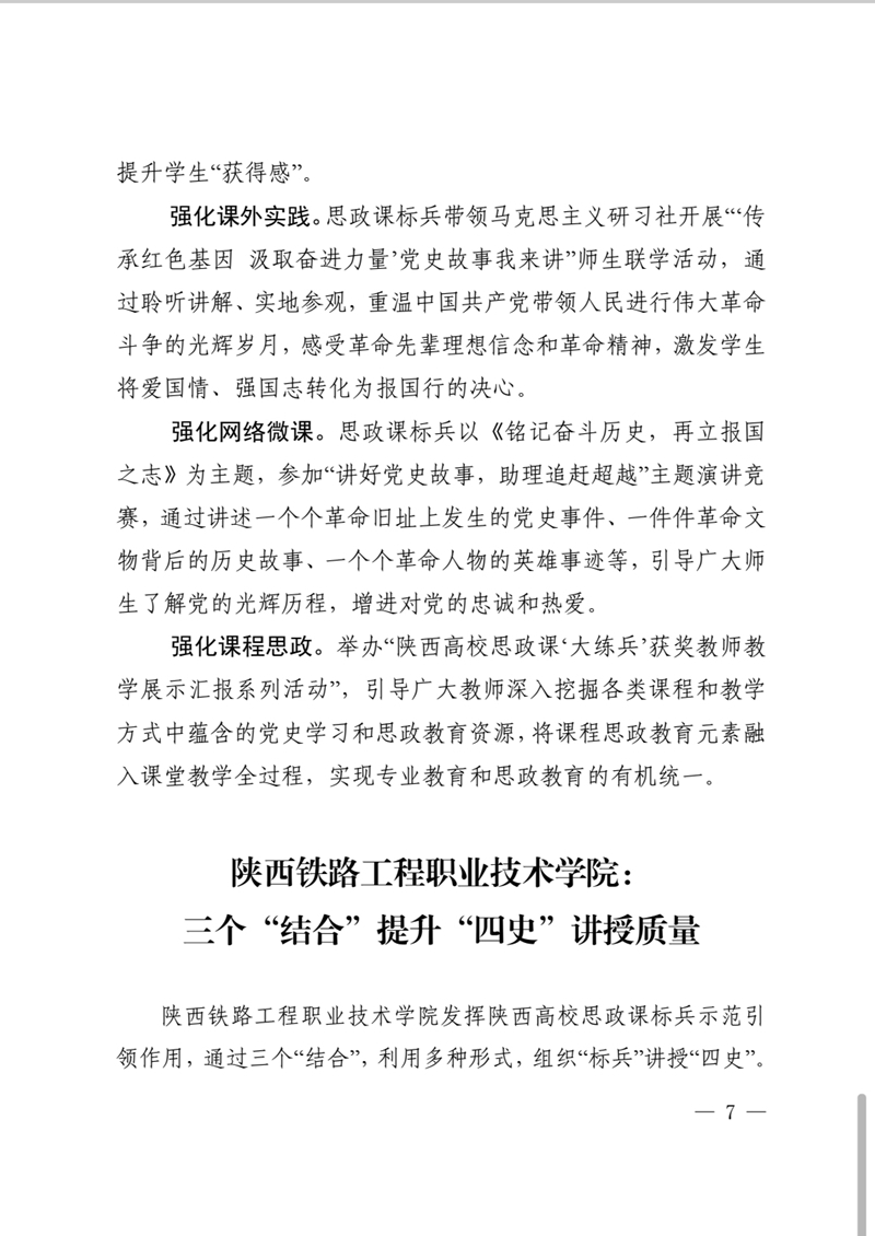 中共陕西省委教育工委 陕西省教育厅党史学习教育简报第33期以《三个“结合”提升“四史”讲授质量”》为题报道了学校思政课标兵讲“四史”典型经验做法,现转载如下: