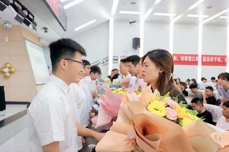 典礼上,李文斌宣读了《关于表彰2021届校级优秀毕业生和优秀学生干部的决定》,并为优秀毕业生、优秀学生干部颁发了荣誉证书,为毕业生代表颁发了毕业证书、印章,同时赠予鲜花;随后,优秀毕业生代表和教师代表相继进行发言,分别表达了对母校的感谢和对毕业生的期望及祝福;接下来,耿雪等教师和毕业生进行了快闪联唱《起风了》和《同桌的你》,祝愿同学们能够在以后的生活及工作中乘风直上,踏浪前行。