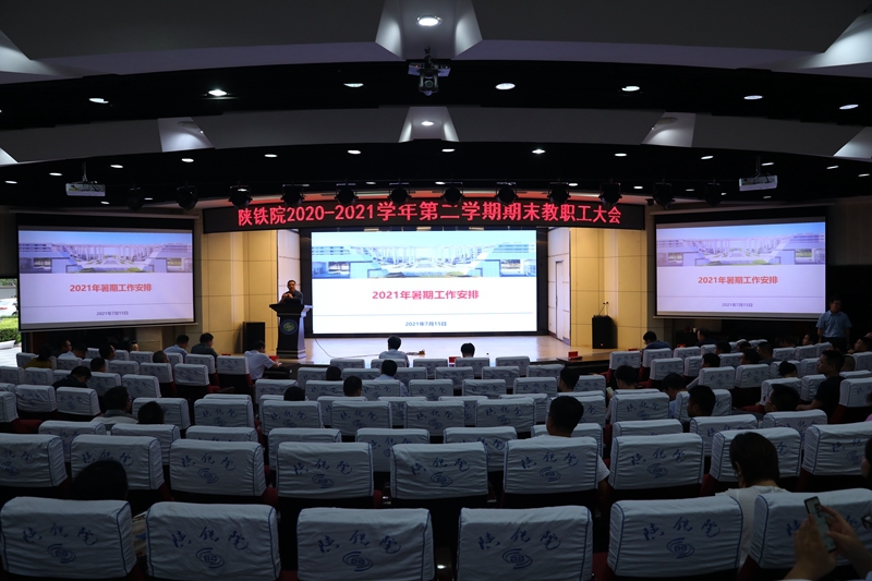 7月15日下午,学校在临渭校区学术报告厅召开了2020-2021学年第二学期期末教职工大会,学校在高新校区诚信厅设立分会场同步直播。学校党委书记王津,校长焦胜军,学校领导班子其他成员以及全体教职工参加大会。会议由党委副书记李林军主持。