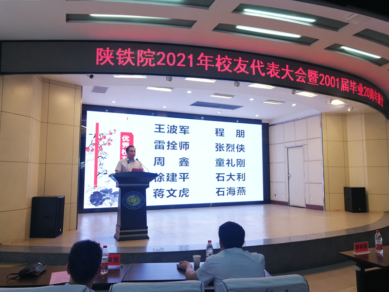 7月17日,陕西铁路工程职业技术学院2021年校友代表大会暨01届毕业20周年聚会在临渭校区举办,来自全国各地的近百名2001届陕铁院(渭铁工校)校友重返华山脚下、渭水之滨,相聚美丽陕铁、重温飞扬青春。校友代表大会在临渭校区学术报告厅举行,校党委书记王津,党委副书记李林军、黎炜,副校长蒋平江、贺建锋、祝和意出席本次大会。01届全体毕业生代表、01届班主任及任课教师代表、各二级学院及相关职能部门负责人,共150余人参加会议,大会由李林军主持。