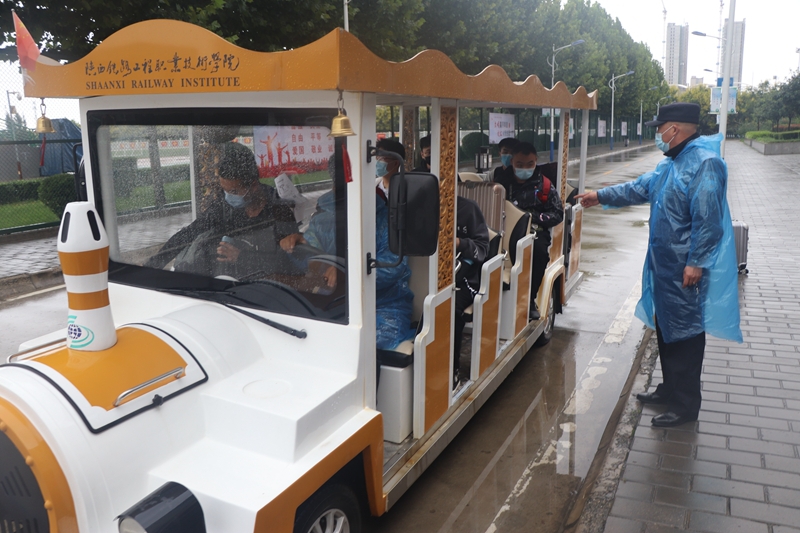 安保处启用观光车运送新生及行李