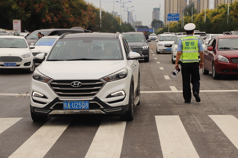 交警在车流中疏导交通