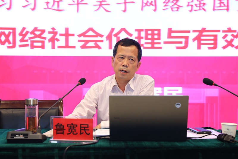 报告会上,鲁宽民结合自己长期的研究成果,联系实际,围绕“为什么要建设网络强国”“建设什么样的网络强国”“怎样建设网络强国”三个问题,从“网络发展与社会动能”“网络危机与道德考量”“网络法治与有效实施”三个方面深入解读了习近平总书记关于网络强国的重要思想。