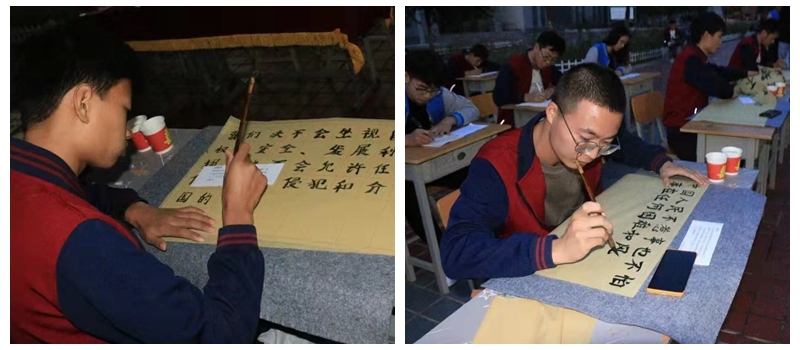 比赛分为“硬笔”和“软笔”两个项目,从各班上报的36幅作品中,选出了软笔、硬笔共13幅作品进入决赛。比赛现场共分为:书法体验区、决赛书写区两个区域。参赛选手们在墨色浓香中尽展书法魅力的同时,也以优秀书法作品书写出对党的歌颂、对祖国的感恩。