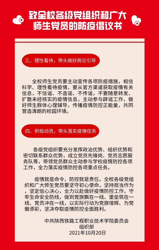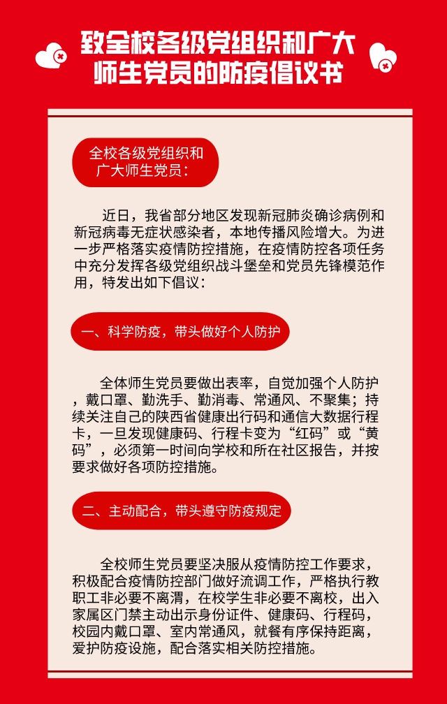 致全校各级党组织和广大师生党员的防疫倡议书