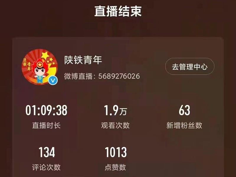 活动通过陕铁青年微博和抖音平台进行直播,微博观看次数最高达到1.9万人,抖音点赞达到1.8万。受到了学生的高度关注,他们积极参与观看互动,纷纷表示要积极配合参与到疫情防控中去。本次直播活动,不仅号召了广大团员青年充分发扬“党有号召、团有行动”的优良传统,在疫情防控工作中发挥了生力军和突击队作用,同时也提高了同学们的疫情防护意识和勇于担当的思想觉悟,坚定了广大学生为防疫工作贡献青春力量的决心。(陈莎莎)
