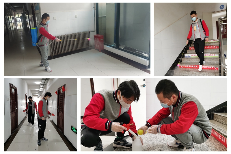 本次学生党员主要进行对1、3号公寓楼层,尤其是隔离宿舍周边的门框、墙面、地面进行了消毒杀菌,为疫情防控工作提供了有力保障。活动中,各在校党员拿着消杀工具对学生公寓楼梯、楼道、洗衣房、卫生死角等处进行了消杀。消杀过程中,学生党员背着沉甸甸的喷雾器、手持喷壶等消杀器械,忍者刺鼻的消毒水气味开展消杀工作,进行全方位的消毒工作,确保没有卫生死角,阻断了病毒的传播。