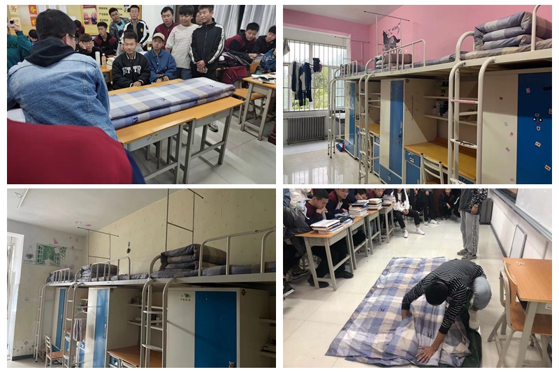 因疫情影响本学期军训延后,为此活动开始前桥建学院也邀请了多名退伍复员的学生,为大一学生现场演示叠军被要领,通过手把手的指导,将军营里叠军被的技巧“压、折、扣捏、修”传授给大家。同时对宿舍内务要求做了详细说明,学生也都积极的参与了进来。最后通过多轮检查和评比给排水3212班209宿舍等9间宿舍,在本次内务评比大赛中脱颖而出被评为内务优秀宿舍。