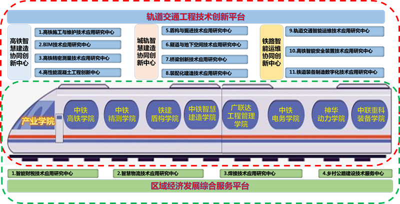 陕西铁路工程职业技术学院坚持依托铁路行业办学,突出铁路特色育人,服务国家“一带一路”倡议和高铁“走出去”战略,对接铁路产业发展和技术升级,锚定高铁和城轨产业高端,以立德树人为根本任务,以专业群建设为核心,以师资队伍建设为关键,以技术创新为驱动,以产教融合为抓手,以体制机制改革为动力,紧紧围绕“一加强、四打造、五提升”的十项改革发展任务,按照“高起点设计、高标准建设、高质量发展”的建设思路,打造“12358”标杆院校,通过实施“建平台、树标杆、筑高峰”三步走战略,建成“引领改革、支撑发展、中国特色、世界水平”的“支撑高铁建设,铸就筑路先锋”高水平高职学校。