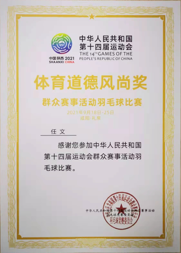 任文表示担任第十四届全运会羽毛球比赛裁判员工作,是一份殊荣,更是一份责任,今后将继续夯实专业技能,提升教学质量,拓宽学生视野,将体育前沿信息结合到日常的教育教学中来,为学校体育事业发展贡献力量。