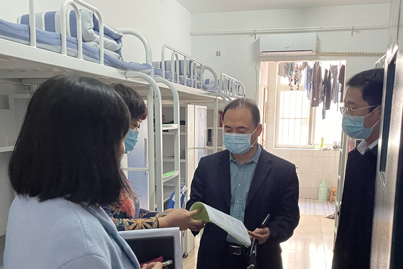 11月5日,临渭区驻区高校疫情防控指导组一行12人来校督查指导疫情防控工作。学校后勤保障处、党委(校长)办公室、人事处、学生处、安全保卫处、宣传部、国际合作与交流处、餐饮中心等部门相关负责人陪同检查。