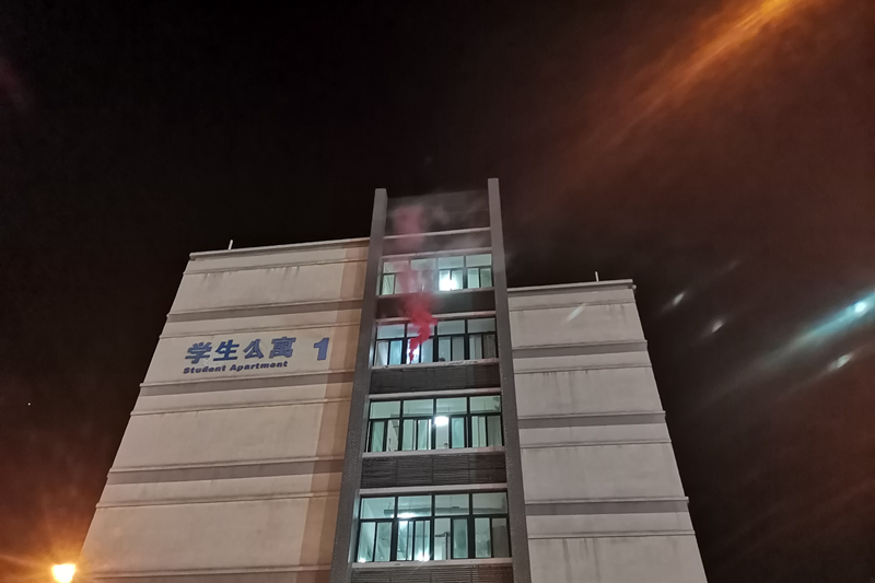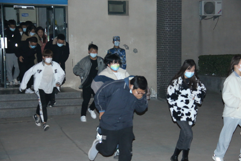 晚上十时许,学生宿舍浓烟滚滚,警报声声响彻校园,全体参演学生立刻在楼层引导员的组织下,迅速通过各个安全出口。疏散过程中,参演学生按照指定的分流线路,有序穿越预定的疏散线路到达广场集合并清点人数上报。本次演练取得了圆满成功,达到了预期目的,从疏散警报响起到最后一名学生成功撤离到安全地带,整个过程紧张而有序!