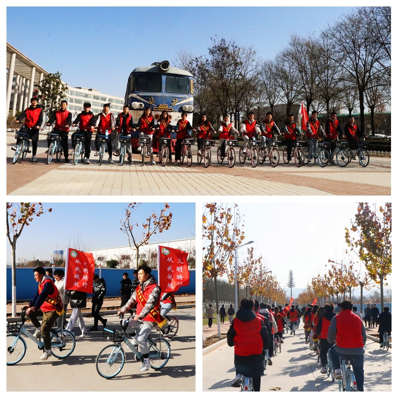 ——举行共享单车文明骑行规范停放校园骑行宣传活动。12月2日中午,在高新校区餐厅广场举行了共享单车文明骑行规范停放校园骑行宣传活动,高新校区全体护校队和百余名青年志愿者参与了此次活动。