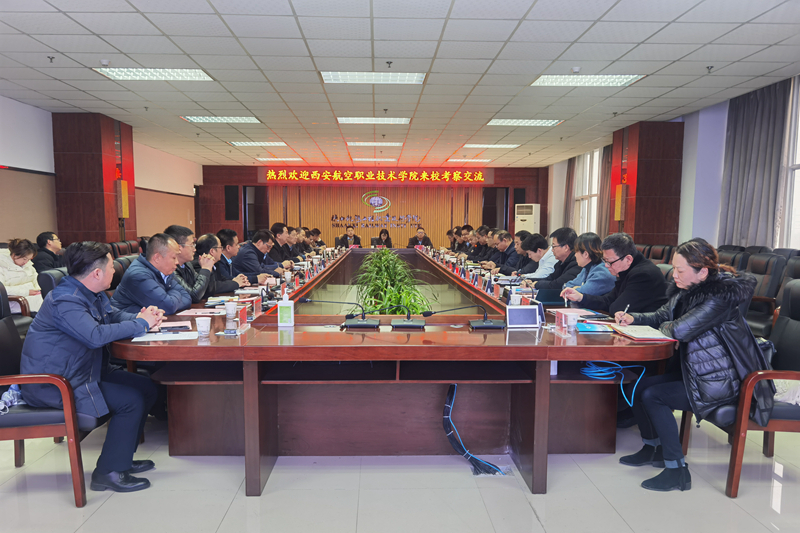 12月10日下午,西安航空职业技术学院党委书记周岩,校长张敏华,党委副书记王宏斌,副校长郭红星、侯晓方一行19人来校考察交流。