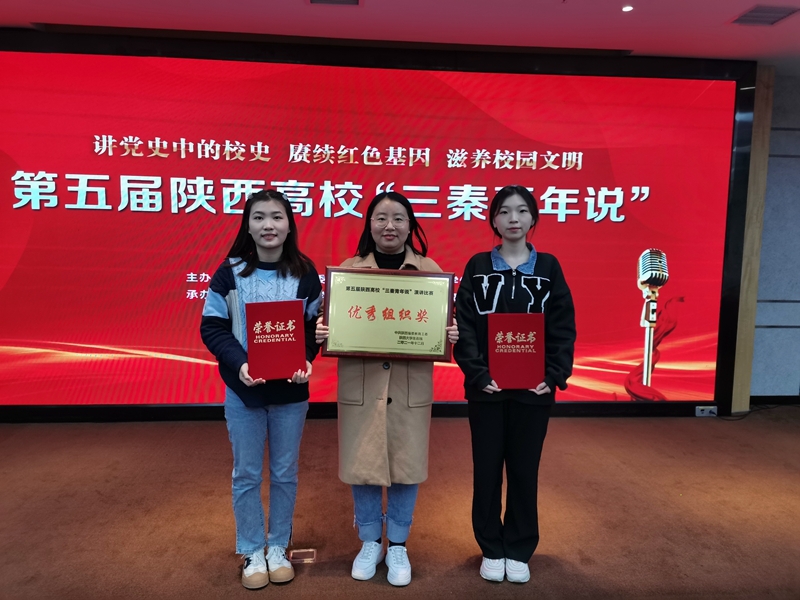 12月11号,第五届陕西高校“三秦青年说”演讲比赛决赛在西北工业大学召开,共有25所陕西高校参赛,凤凰网、中国教育在线、中国日报、搜狐陕西、陕西教育出版社等媒体出席。经过前期的初赛,视频形式复赛,学校铁道运输学院通信3201班张震、信号3201班张雨涵在激烈竞争中荣获优秀奖,学校荣获“优秀组织奖”。