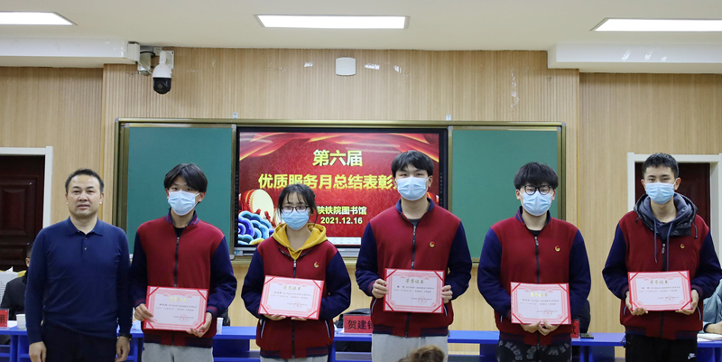 12月16日下午,陕铁院图书馆第六届优质服务月总结表彰大会在临渭校区B500举行,学校副校长贺建锋、校工会主席车绪武、校工会副主席黄跃翔、铁道运输学院党总支书记李文斌、铁道动力学院党总支书记侯峰等领导出席会议,图书馆馆长石高峰主持会议,获奖师生代表、图书馆工作人员及图管会学生代表参会。