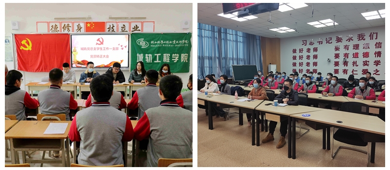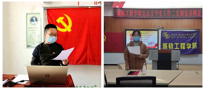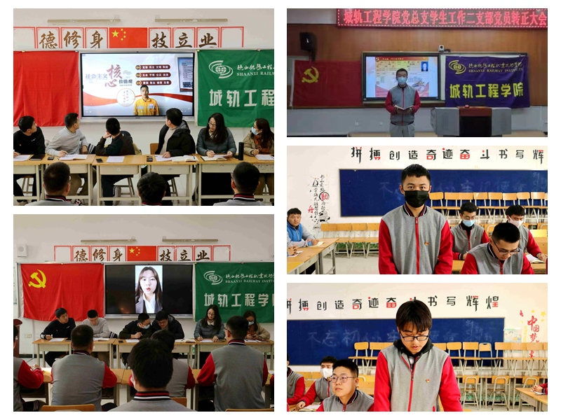 12月17日下午,城轨党总支学生工作一、二支部在GB516、教师发展中心组织开展党员接收大会,本次会议由各学生工作支部书记蒋萌、马源源主持,教师党员及学生党员代表参会。