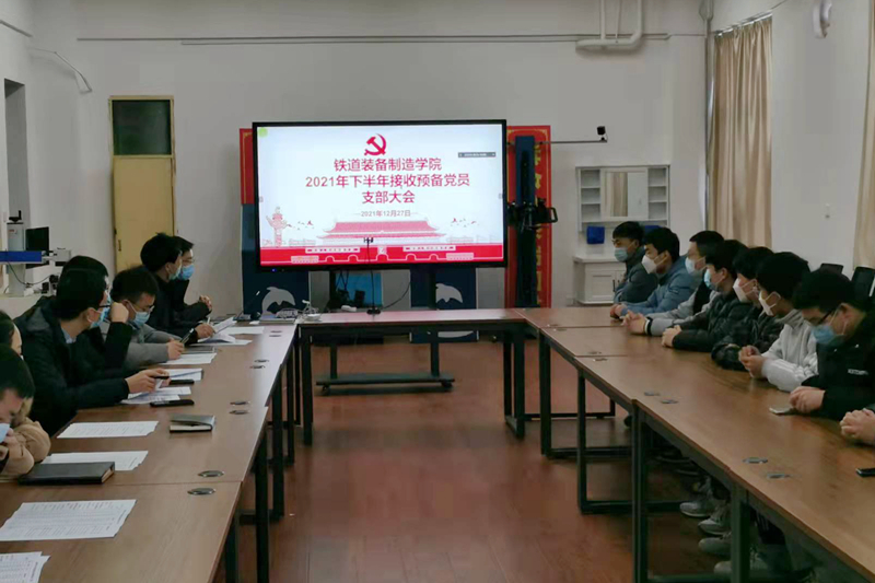 12月27日,铁道装备制造学院学生工作党支部召开2021年下半年接收学生预备党员支部大会。支部全体正式党员、预接收预备党员参加会议,大会由支部书记万仁远主持,会议采用线上线下及分会场的形式开展,符合防疫要求。