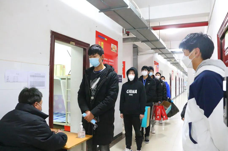 按照错峰就餐原则,学院每天严格门禁制度。同学们在规定的时间段进行吃饭、打水等。各个楼层也都配有老师和学生志愿者,对进出宿舍和楼层的人进行登记,提醒他们戴口罩、1m间隔、出入证等。