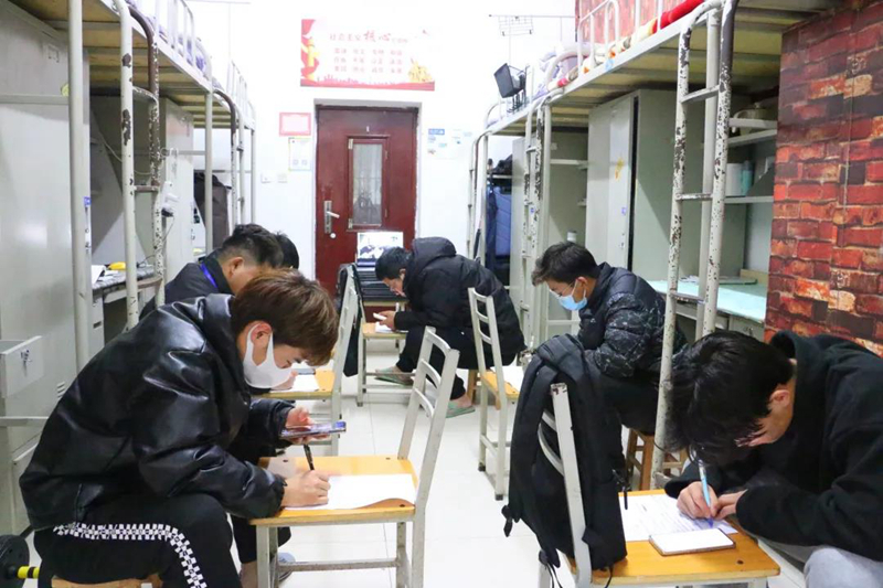 疫情期间,学校依然坚持停课不停学,大家在宿舍线上学习、备考、考试。