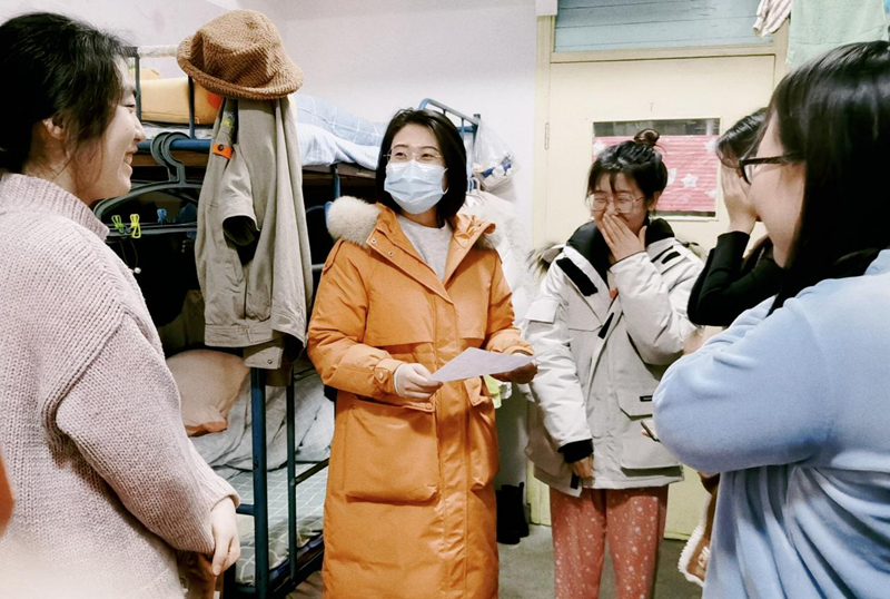 学校全员制动后,蒋艺和部门同事共同守护国际学院500多位“国小范”,确保全体同学在特殊时期学习生活健康有序。他认真做好日常执勤、每日打卡、健康管理、课程监测、志愿者管理等工作。那里有学生需要,那里就有他忙碌的身影。他关爱学生,无论何时,一旦学生生病,他都第一时间陪护学生前往医院就诊。他严格要求,为了保障上课质量,他每天深入宿舍认真督促,确保学生上课上线打卡率100%。他主动督促,为了丰富学生宿舍生活,组织学生开展“宿舍大扫除”“宿舍无氧运动接力赛”、“线上K歌比赛”“《中国医生》观影”等活动,让学生在宿舍内也保持积极向上的心态。