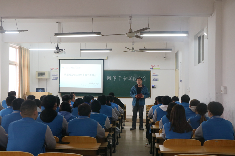 3月1日下午,铁道动力学院在B306召开新学期第一次团学干部会议。学院党总支书记侯峰、学工办主任侯豫星、辅导员司志超以及团学生干部共60余人参加本次会议。会议由侯豫星主持。