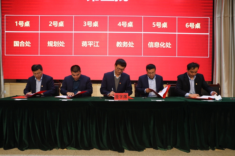 蒋平江副校长与教务处、信息化与网络安全处、发展规划处、国合处签订责任书