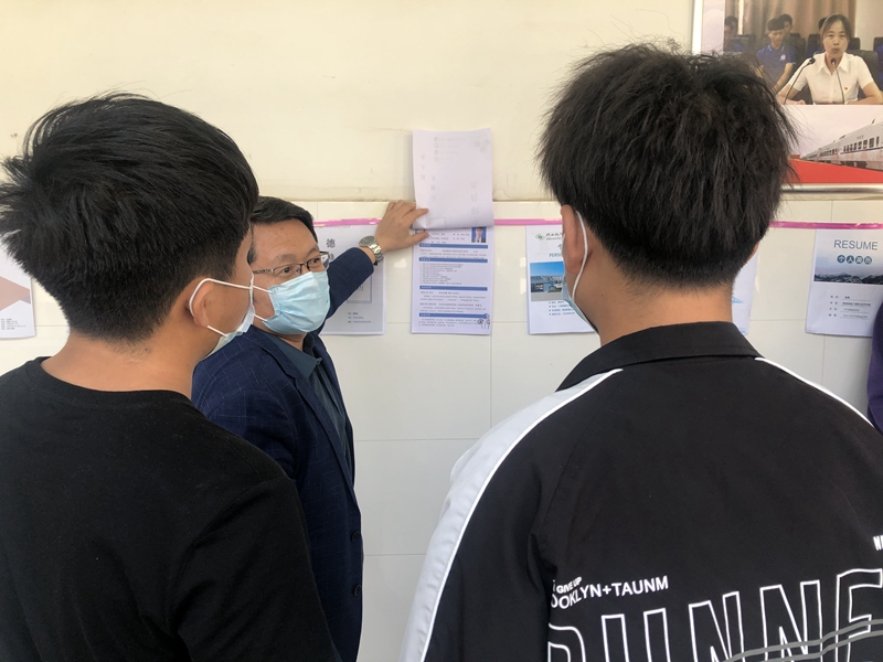 学院党总支书记杨江朋与观展学生亲切交流,他肯定了学生们的优秀表现,并结合当前严峻的就业形势以及企业招聘要求,给同学们讲述了简历如何制作,规划如何建立,对大学生尽早树立正确的就业观念,做好职业发展,提升就业能力方面提出了期望和建议。