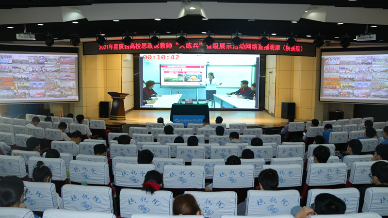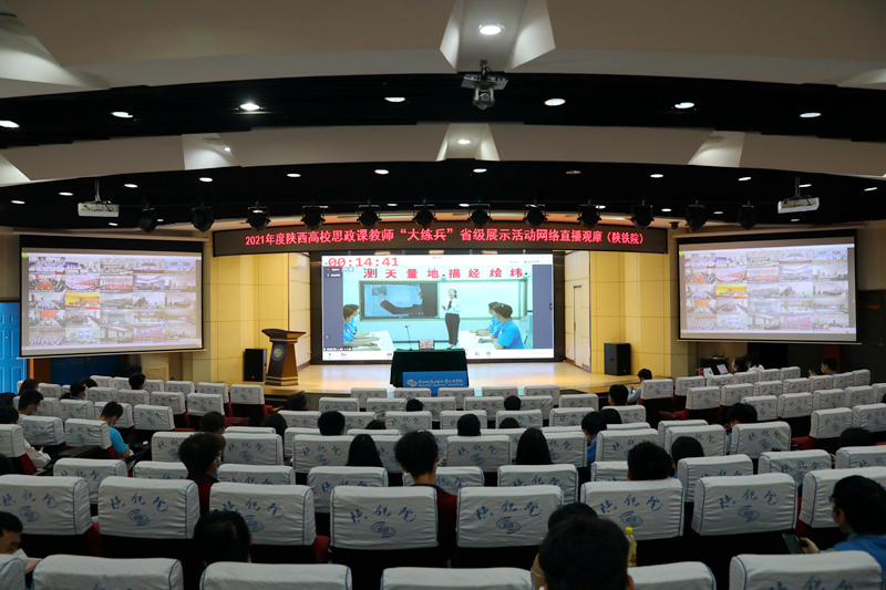 4月26日,2021年度陕西高校思政课教师“大练兵”省级展示活动在陕西师范大学(长安校区)举办,根据疫情防控要求,本次活动采用线上线下相结合的方式,马克思主义学院吕瑞琴、测绘与检测学院魏瑶两位老师代表学校在线展示,校领导、宣传部长、教务处长、全体思政课教师、部分专业课教师和在校大学生在两校区报告厅观摩网络直播。