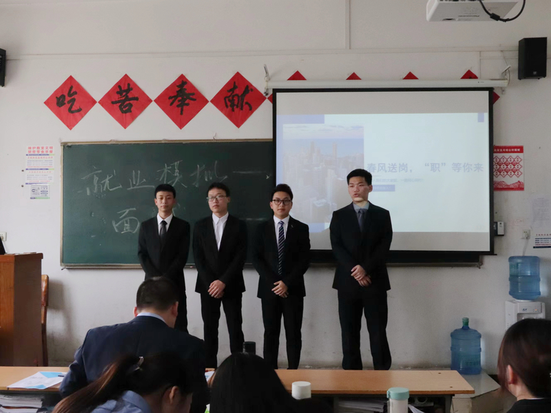 “模拟面试”包括面试准备、开始面试、提问环节、结束面试、面试评价五个环节,严格按照正规公司面试的形式进行,学生精神饱满,有序入场,轮流面试,积极展现最好的一面。每位同学在参加面试的同时,也能够在台下观摩、学习借鉴其他同学的面试表现,取长补短,提升自我。模拟面试现场同学们很快进入状态,达到了考察的效果和目的。