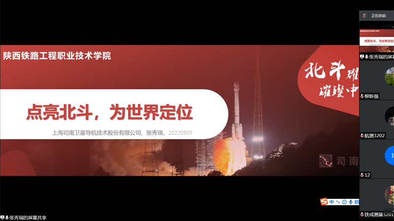 为扎实做好2022年学校职教活动周活动,突出测量专业特色,5月9日晚,学校测绘与检测学院特邀司南导航技术公司专家张秀瑞和全体教师一起,通过腾讯会议“职”播形式举办“走进北斗,导航人生”知识讲座,为全院测绘学子带来一场集行业发展历程、测绘前沿科技、专业发展前景和家国情怀熏陶的测绘知识盛宴。