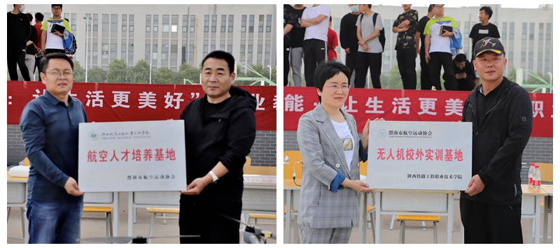 为了让大一学生了解无人机行业应用方向,无人机航测社团组织学院工业级无人机进行了静态展示,最后,渭南市航空运动协会与学院领导互授了实训教学基地牌匾,为后期社团建设、专业发展、校外实训基地共建奠定了基础。