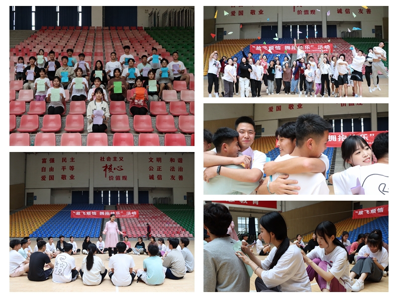 5月12日下午,高铁工程学院在文体中心举办了“放飞烦恼,拥抱快乐”为主题的心理释压团辅。首先通过“刮大风”热身活动拉开序幕,随后开展第一项活动并给每个人分发彩纸和笔书写“放飞烦恼,拥抱快乐”的梦想清单,让大家写出自己心中的那一个个小梦想,并为之努力。接着进行第二项活动“大声说出梦想”,同学们在看台上坐成心形,每个同学都很热情的依次下台面对同学们说出自己的梦想,最后大家纷纷将自己的烦恼也添加到彩纸上,随后放飞“纸飞机”,将自己的烦恼与梦想清单叠成自己喜欢的纸飞机形状,用力扔向天空,让它带着他们的梦想向四面八方飞去。