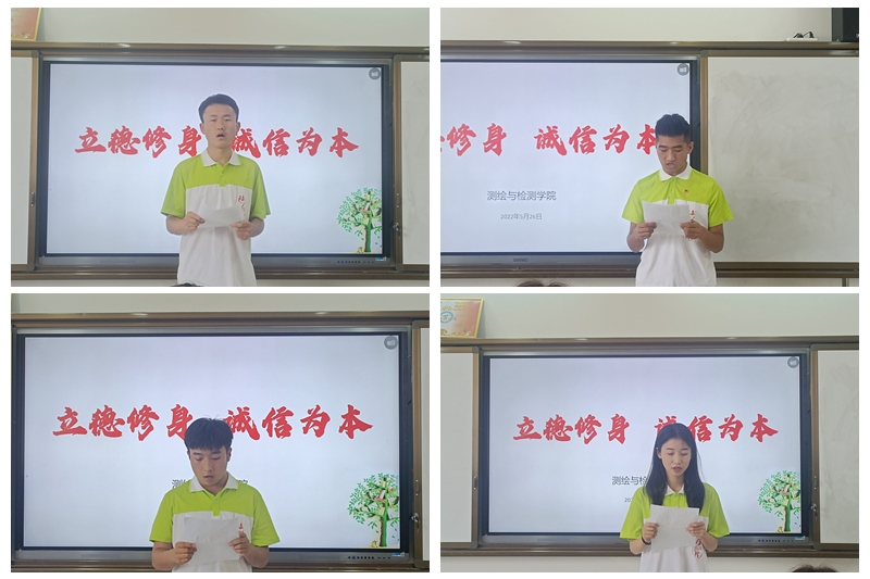 演讲结束后,对全院在诚信教育系列活动的中表现优秀的学生进行了表彰。测绘与检测学院自五月份以来通过开展手绘图片展、征文比赛、知识竞赛等多种方式对学生进行诚信教育,提高了学生的诚信意识,营造了良好的学风考风,助力学生励志成才。