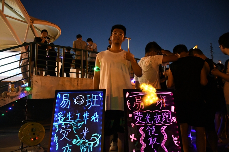 “易班·荧光夜跑”活动开展旨在引导学生关注易班活动,主动放下手机、离开电脑、走向操场,缓解压力,愉悦身心,体现了易班建设其中的文化娱乐功能,同时也进一步丰富了校园文化生活。(王力/文 易班学生工作站/图)