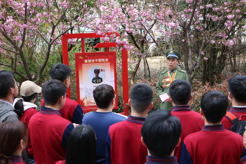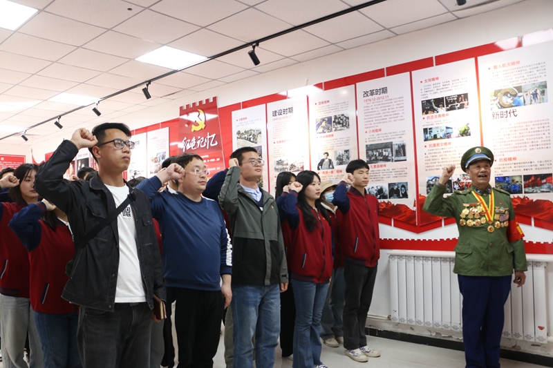 在干休所内的红色党建阵地,讲解员先后为大家讲解了渭南地区离退休党员干部的先进事迹、中国共产党的百年党史、传统文化的精神内涵、马克思主义在中国的传播历程等内容,随后大家现场聆听了渭南市关工委副主任、干休所银发志愿服务队队长王伟志讲述的关于雷锋精神的时代内涵和党的二十大精神解读的微党课,并在他的带领下全体党员重温入党誓词,使在场的学生党员受到了一次深刻的思想淬炼和精神洗礼。
