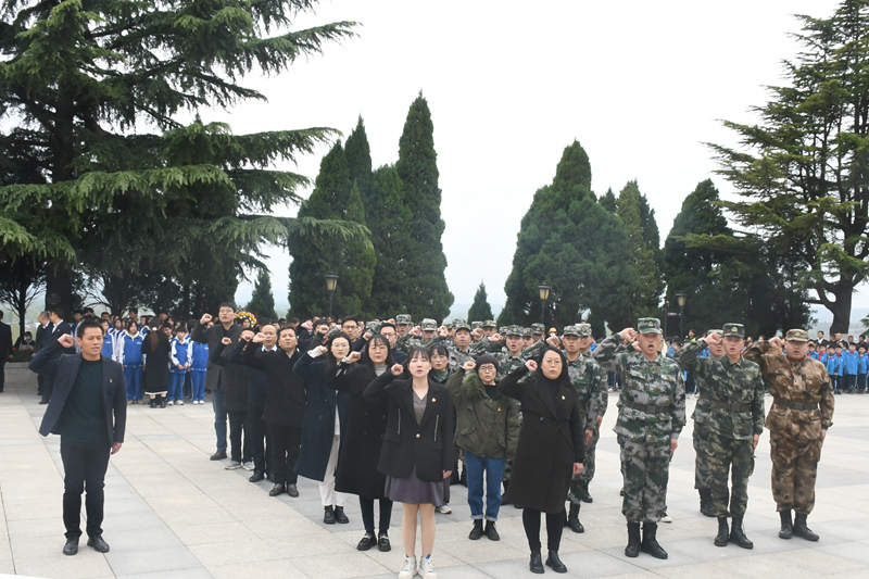 在庄严肃穆的纪念碑前,举起右拳,面对鲜红的党旗庄严宣誓,重温入党誓词。党员们的宣誓声铿锵有力,久久环绕在这座纪念碑前,表达了党员教师要立足本职,立德树人的教育初心。全体党员向渭华起义先烈行三鞠躬礼,缅怀革命先烈,向他们表达崇高的敬意。所有党员有序环绕,共同瞻仰了烈士纪念碑。
