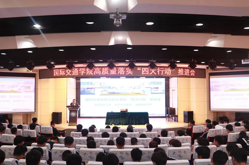 4月12日中午,国际交通学院于临渭校区报告厅召开高质量落实四大行动推进会,国际交通学院副院长郝付军主持,学生处副处长黄阿岗受邀参加,全体在校生和辅导员参会。